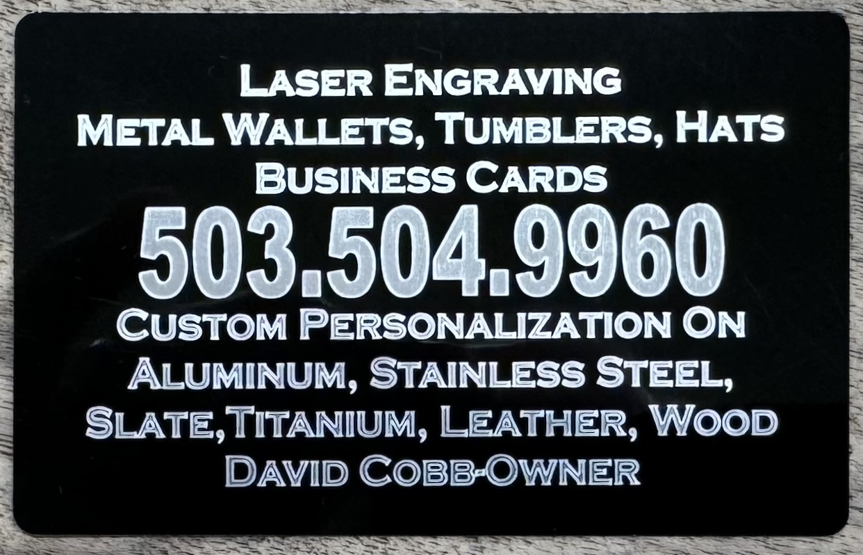 Contact Dave for design ideas and we can make some AWESOME business cards for your best customers. David@CascadeCustomCreations.com or by phone at 503-504-9960.