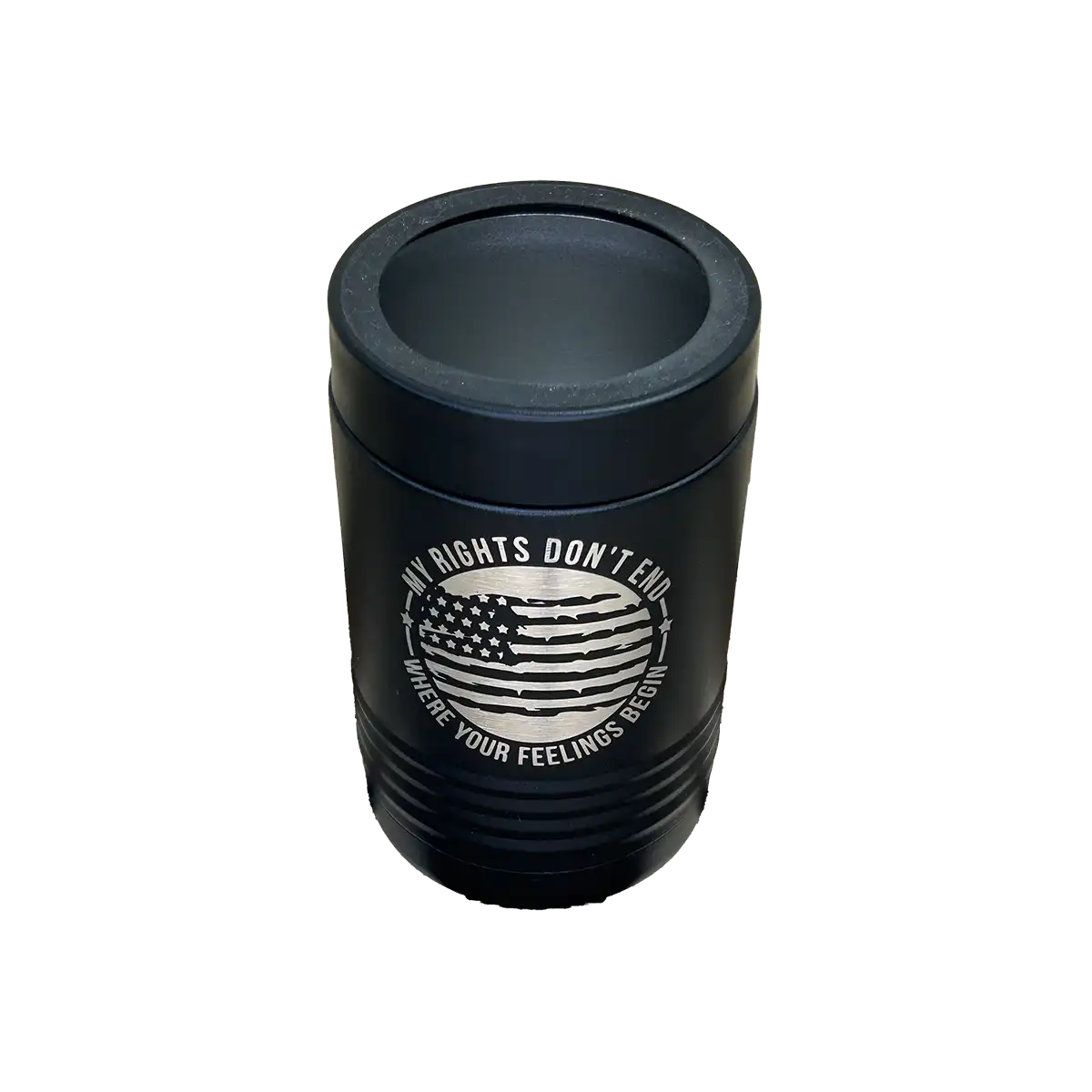 Laser engraved beverage holders, hold a 12oz or 16oz can or bottle. These holders are sweat proof, made with powder coated stainless steel. Screw on top included.