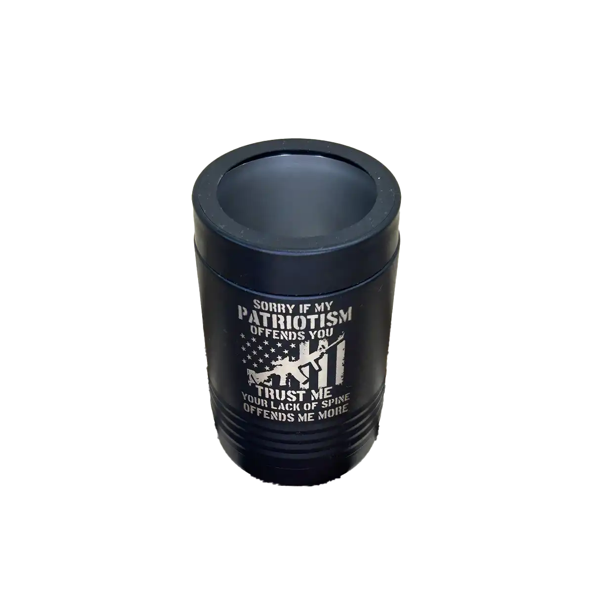 Laser engraved beverage holders, hold a 12oz or 16oz can or bottle. These holders are sweat proof, made with powder coated stainless steel. Screw on top included.